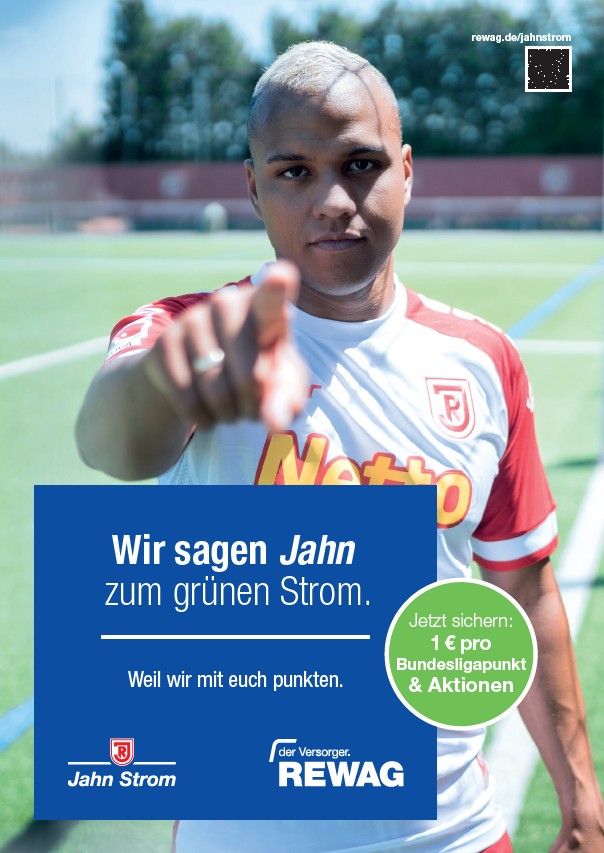 Wir sagen Jahn zum grünen Strom. Weil wir mit euch punkten. rewag.de/jahnstrom Jetzt sichern: 1 € pro Bundesligapunkt & Aktionen