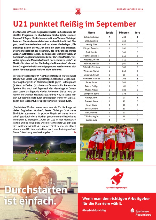 Die U21 des SSV Jahn Regensburg hatte im September ein