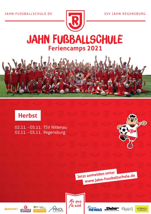 JAHN-FUSSBALLSCHULE.DE SSV JAHN REGENSBURG jAHn FußBaLLsCHuLE Feriencamps 2021 Herbst 02.11. - 05.11. TSV Nittenau 02.11. - 05.11. Regensburg Jetzt anmelden unter www.jahn-fussballschule.de