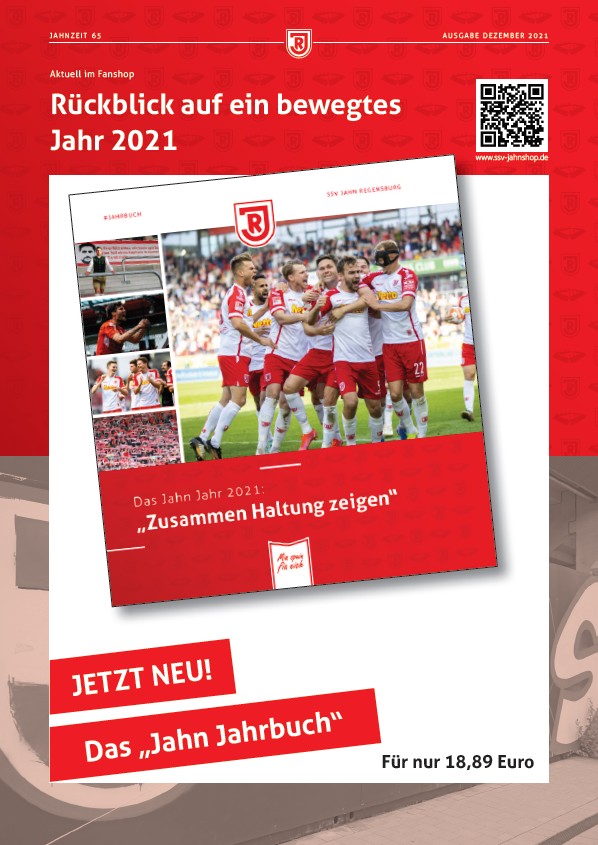 JAHNZEIT 65 AUSGABE DEZEMBER 2021 www.ssv-jahnshop.de Aktuell im Fanshop Rückblick auf ein bewegtes Jahr 2021 JETZT NEU! Das „Jahn Jahrbuch“ Für nur 18,89 Euro