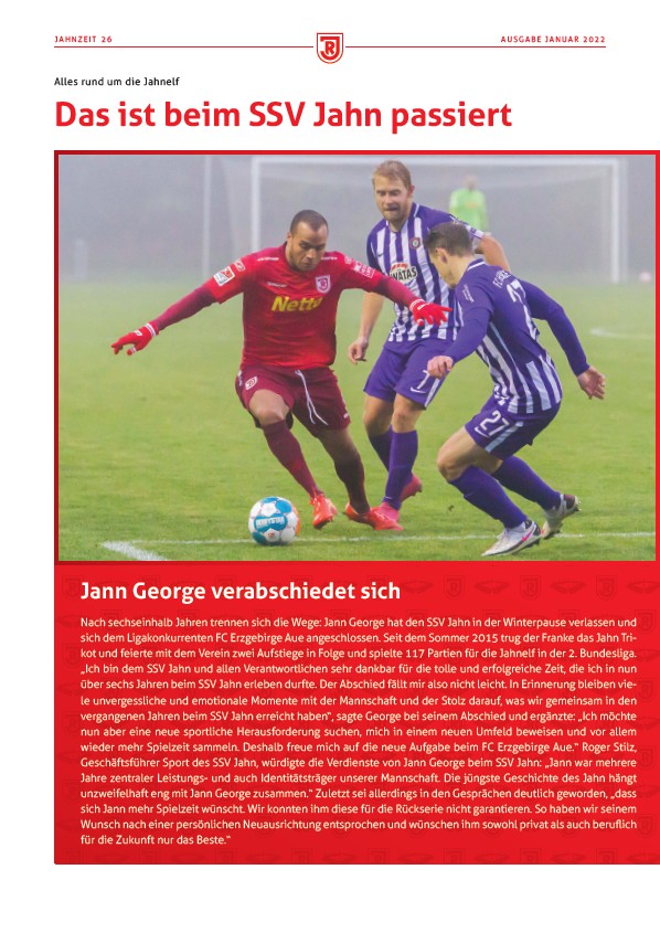 Nach sechseinhalb Jahren trennen sich die Wege: Jann George hat den SSV Jahn in der Winterpause verlassen und