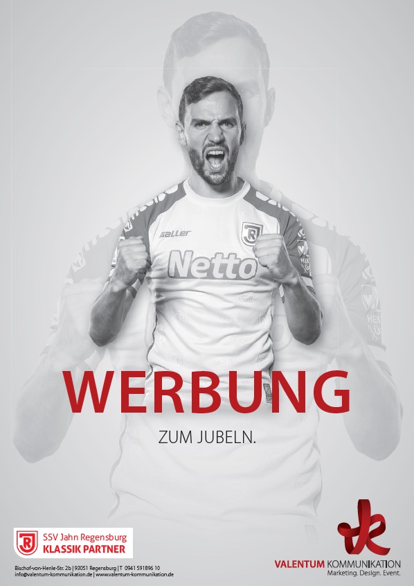 WERBUNG SSV Jahn Regensburg KLASSIK PARTNER ZUM JUBELN. Bischof-von-Henle-Str. 2b | 93051 Regensburg | T 0941 591896 10 info@valentum-kommunikation.de | www.valentum-kommunikation.de
