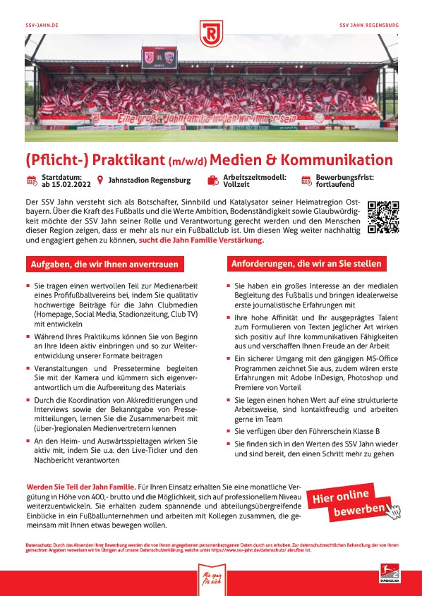 ab 15.02.2022 Jahnstadion Regensburg Arbeitszeitmodell: