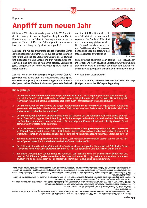 sich heute gleichsam der Anpfiff der Regelecken für die